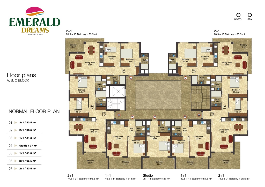 Der „Emerald Park“ hat 196 Luxuseinheiten mit Einzimmerwohnungen, ein, zwei oder drei Schlafzimmer oder Penthäuser mit zwei oder drei Schlafzimmern.