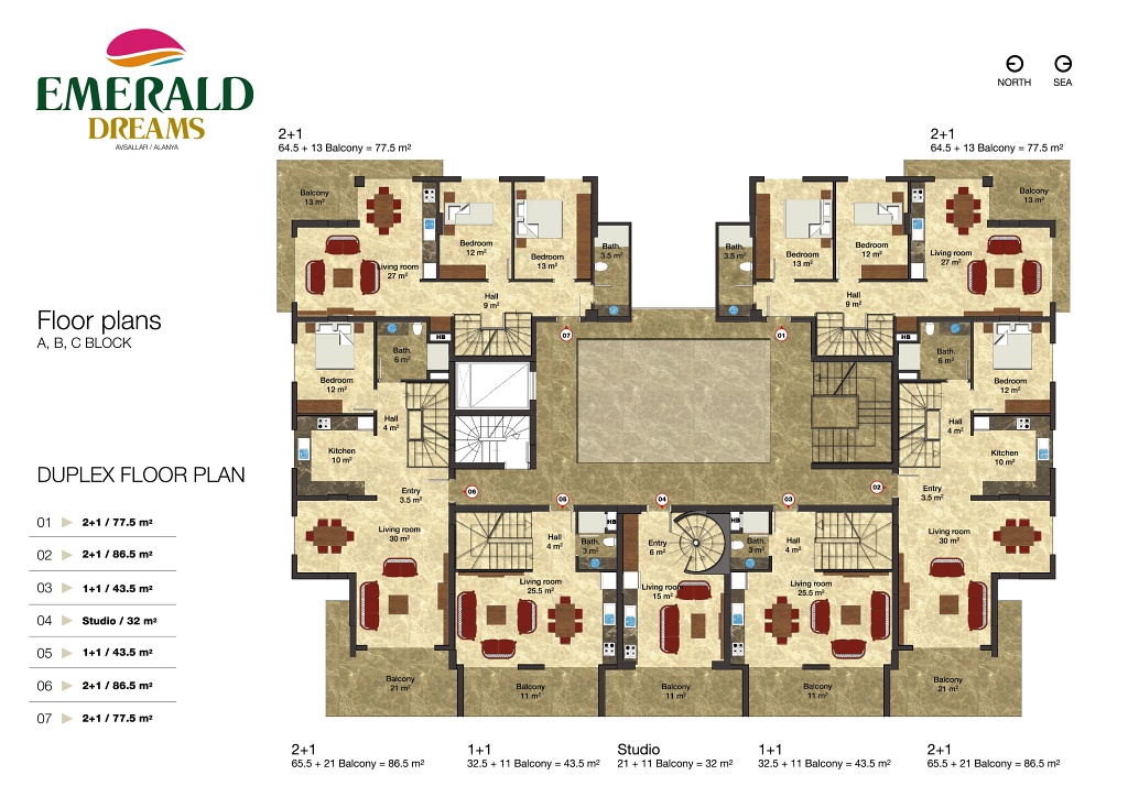 | Dublex | 4+2 | €150,000 | 4 | 3 | 160 m2 |