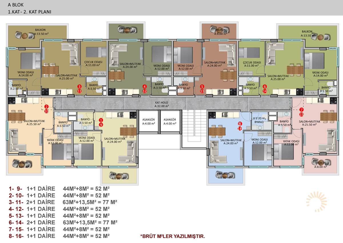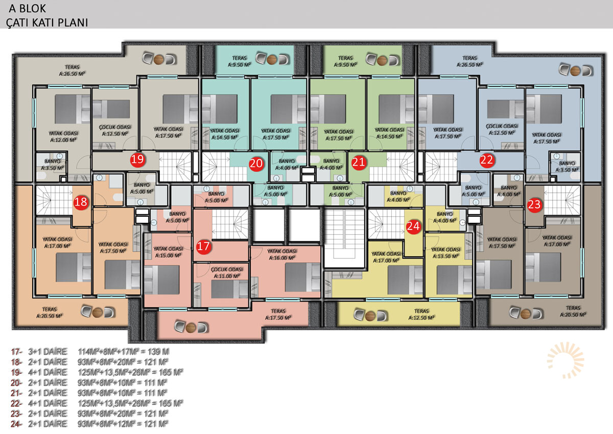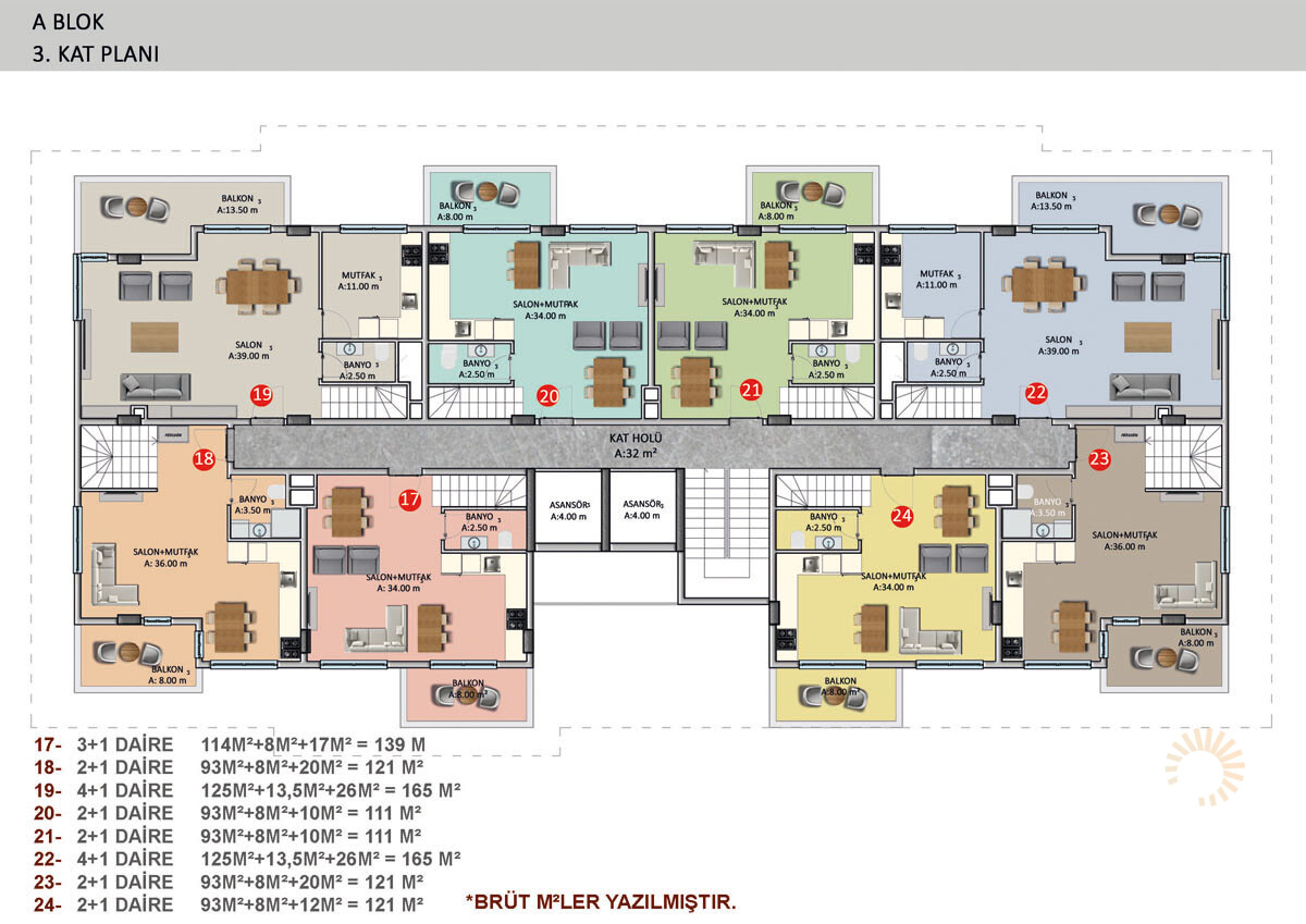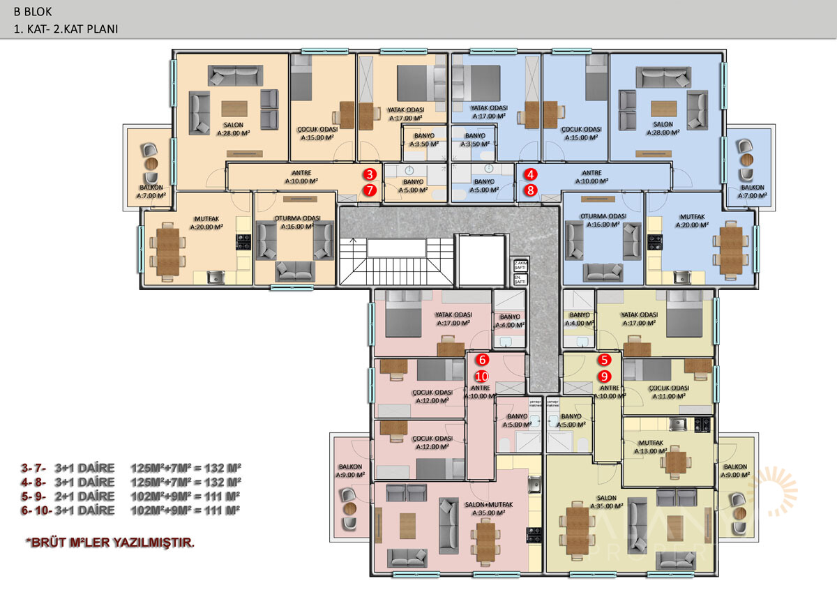 Exklusive moderne Wohnungen in Oba, Alanya. Dieser moderne Komplex befindet sich derzeit im Bau und wird bis September 2023 fertiggestellt sein. Das Projekt besteht aus 6 Blöcken, die auf 11.000 m2 gebaut werden. Es sind insgesamt 180 Wohnungen mit einer Auswahl an Grundrissen verfügbar. Dazu gehören 1-, 2- oder 3-Schlafzimmer-Wohnungen, sowie 2- und 3-Schlafzimmer-Penthouse-Wohnungen und Garten-Penthouse-Wohnungen. Die Größe der Wohnungen reicht von 50 m2 bis 205 m2. Jedes der Apartments wird einen Blick auf die Stadt Alanya, das Mittelmeer und die üppige grüne Umgebung haben. Die Bäder in jedem Apartment sind bereits mit einer Fußbodenheizung ausgestattet.