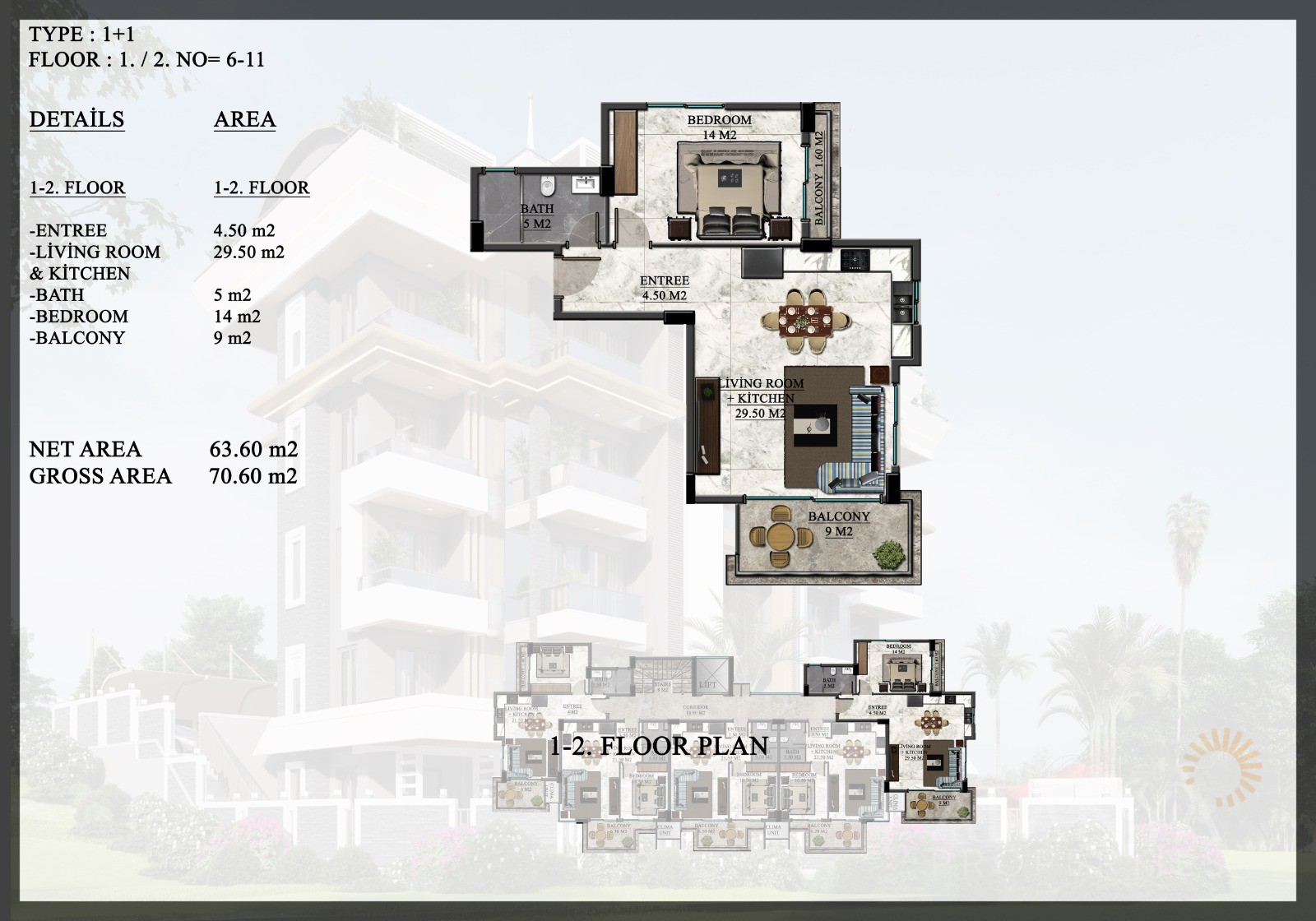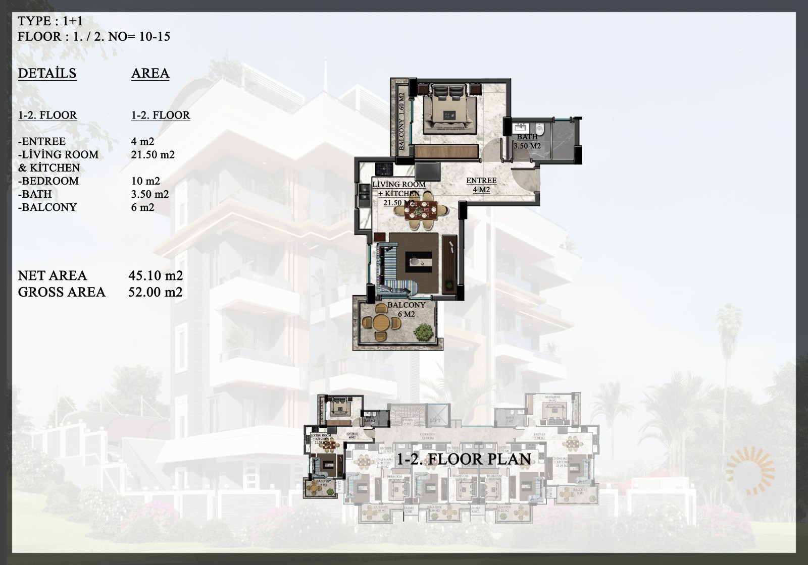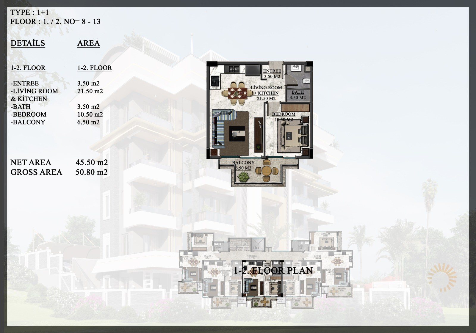 ID: AL-899Bedrooms: 1,2m2: 45
