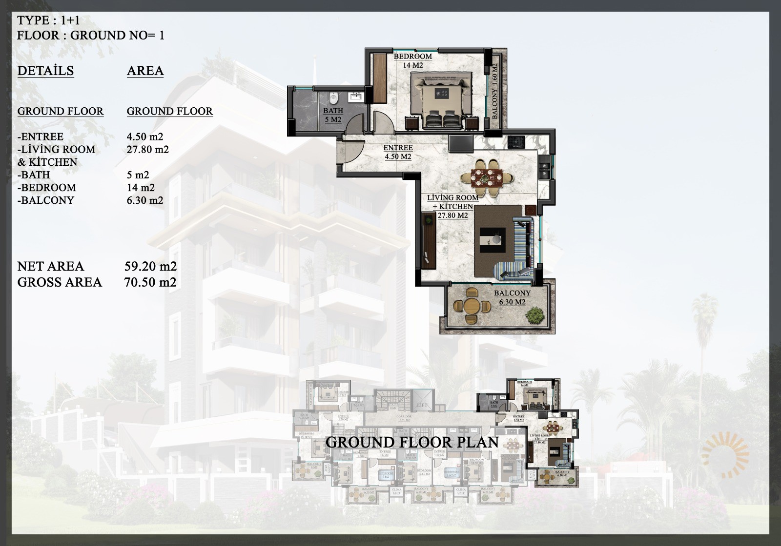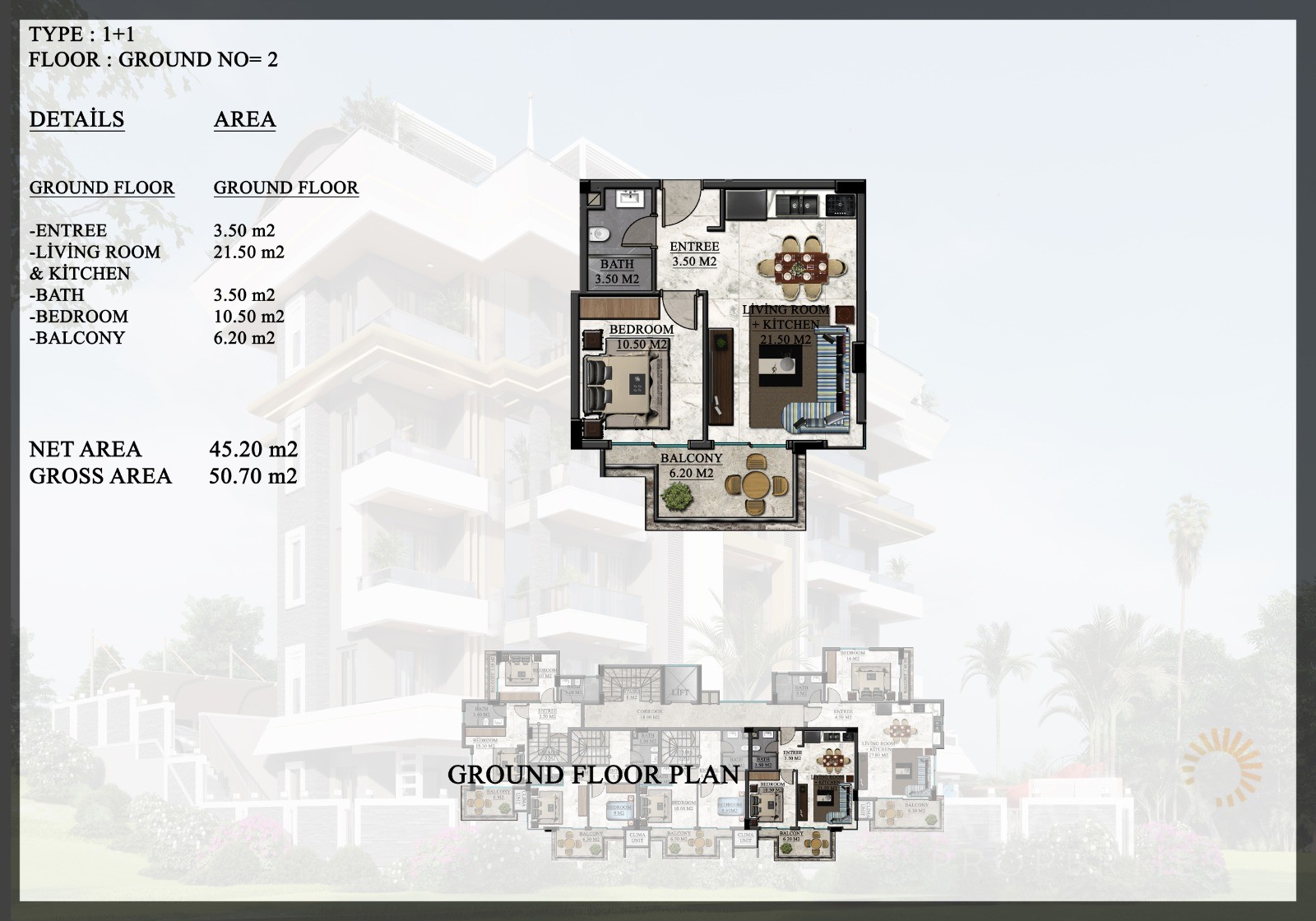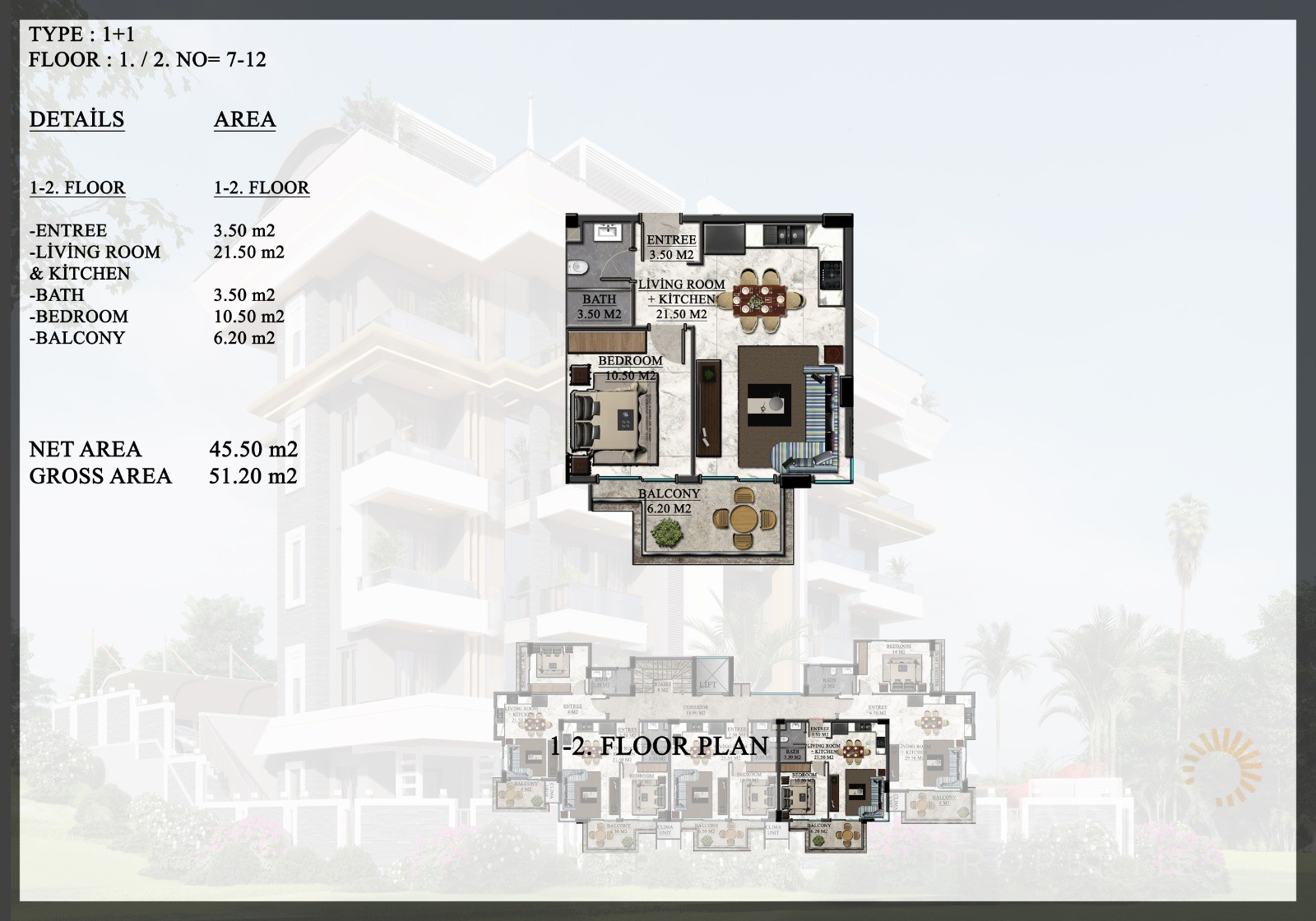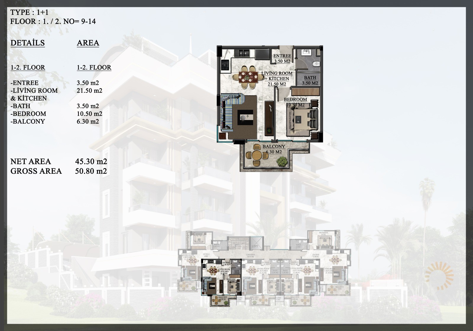 ID: AL-899Bedrooms: 1,2m2: 45