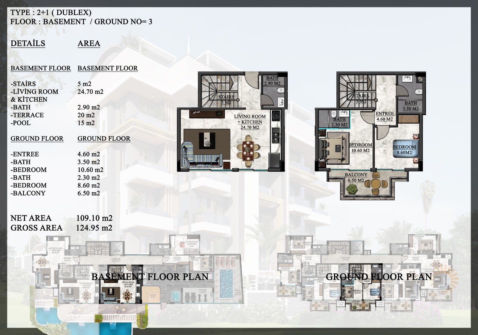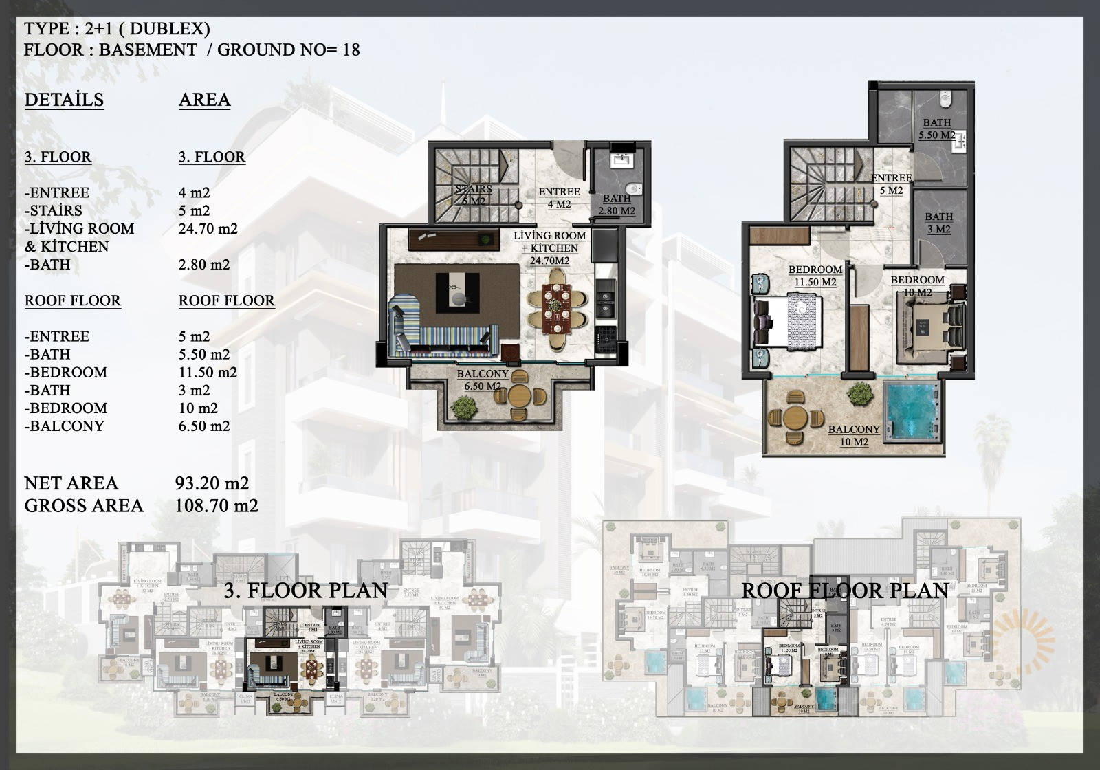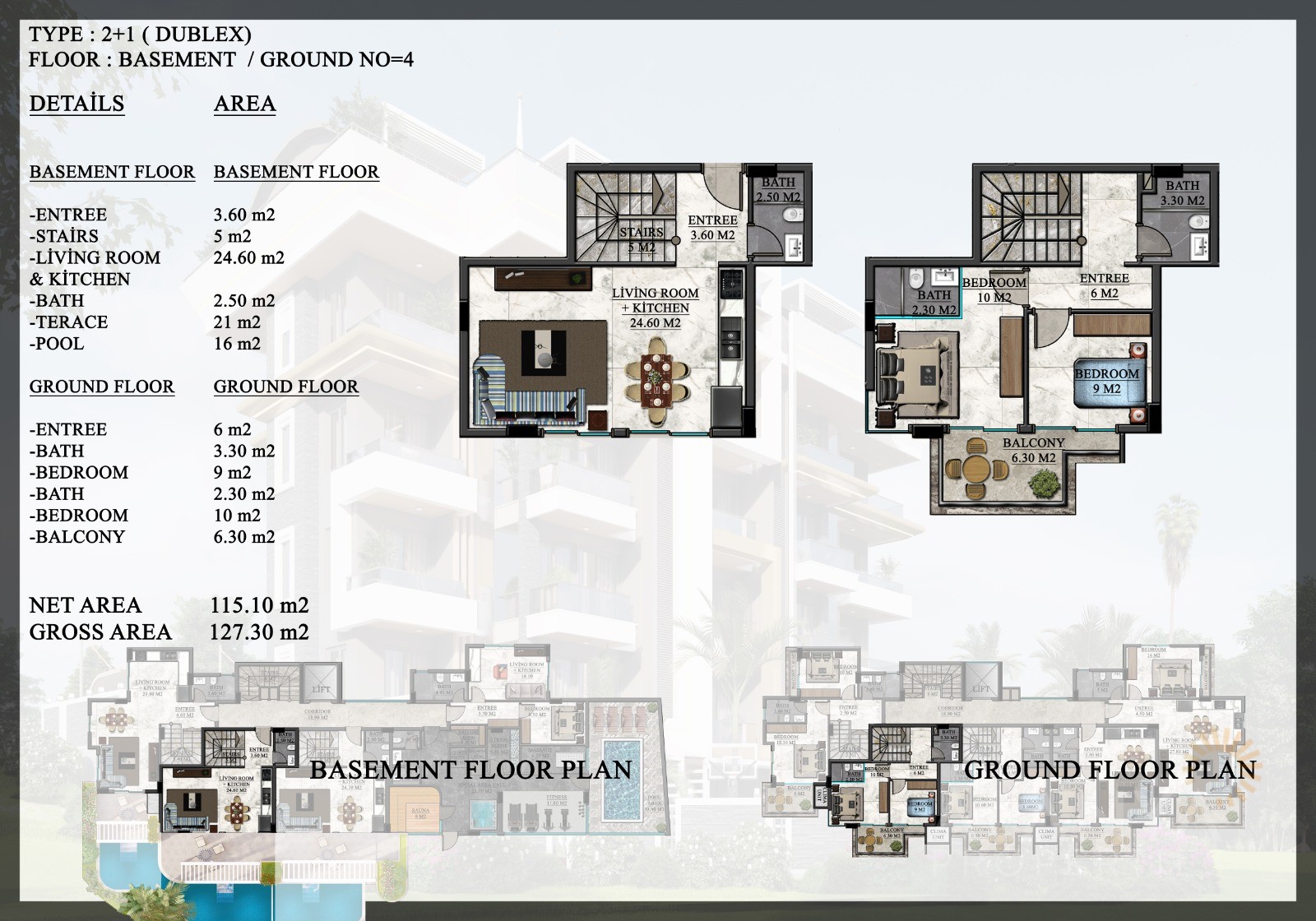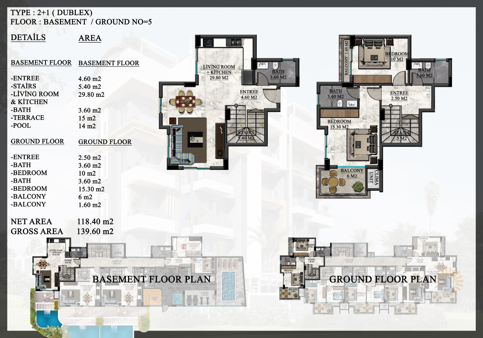 Investment opportunity in Oba Alanya with a contemporary project consisting of just 1 block. There are a total of just 20 apartments with 3 different apartment types available. These include 1-bedroom apartments (50,7 m2 to 52 m2), 2-bedroom penthouse apartments (101 m2 – 147 m2), as well as 2-bedroom garden duplex apartments with private swimming pools (125 m2 – 140 m2).